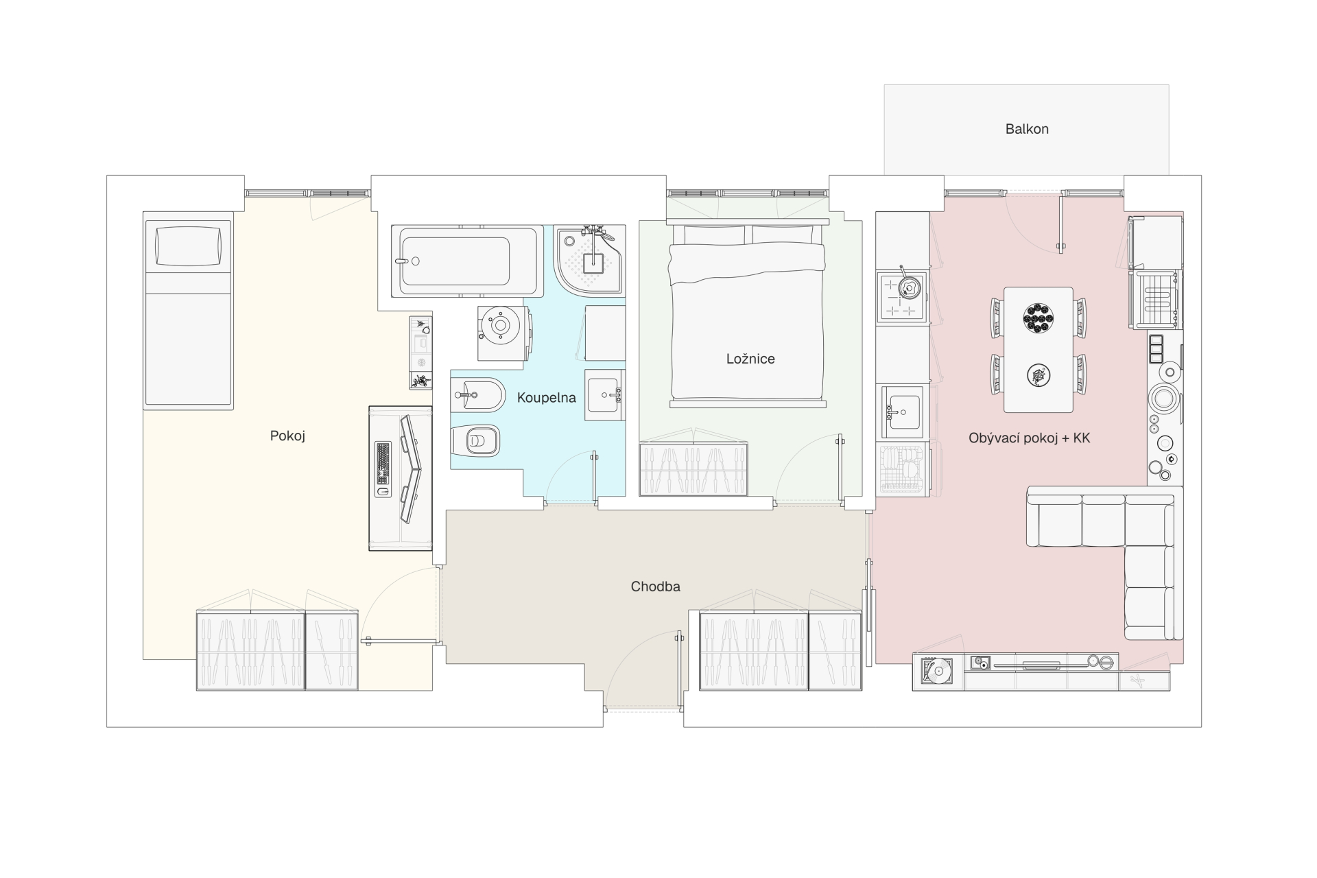 K bytu náleží balkon (2,3 m2), ideální pro ranní kávu či večerní relax. A jako bonus velký sklep (5,65 m2)