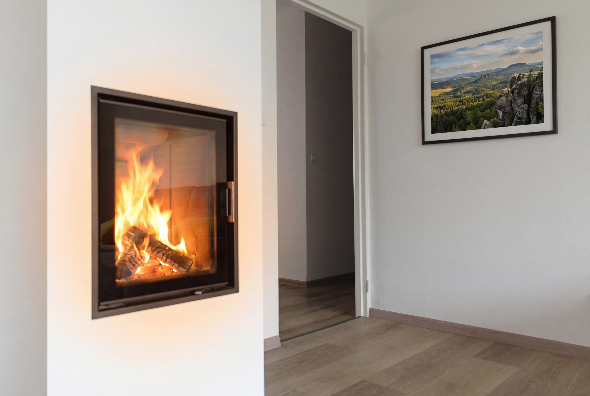• funkční krb v obývacím pokoji, který vytváří jedinečnou a útulnou atmosféru domova